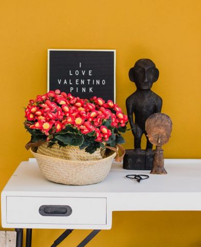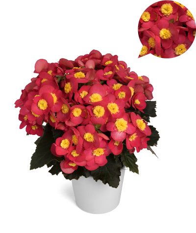 Бегония Элатиор Валентино Пинк – гибридный вид, отличающийся компактностью. Максимальная высота 35 см. Стебель разветвлённый, листья округлые, со слабоволнистыми, немного опушенными краями. Цветет данный сорт ярко-розовыми цветками с ярко-желтой серединой.